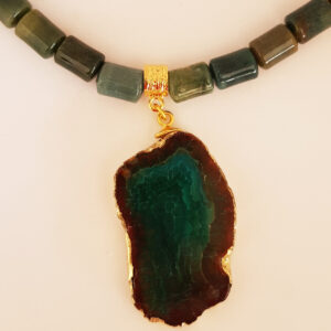 Oito pedras cilíndricas de ágata verde 1cm. Como são pedras naturais, a cor das pedras sofrem variações de tonalidade do verde a marrom.