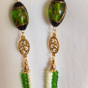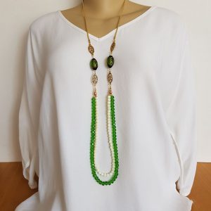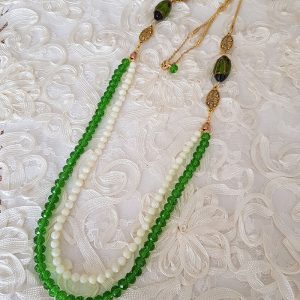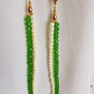 Simplesmente lindo!! O requinte do colar de cristais estilo Swarovski, combinado a delicadeza de madrepérolas.  Para dar mais elegância a peça, duas contas de vidro lampwork. A técnica de lampwork consiste em moldar finos bastões de vidro no fogo para criar delicadas contas com desenhos minuciosos, como podem ser vistos nas duas pedras de vidro que compõe este  acessório, e que combinado a corrente dourada, transformou uma simples bijuteria em uma  sofisticada peça .