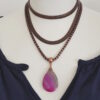 Ckoker de cordão de couro com linda gota de pedra sabão preta. E pra deixar mais chamosa a rosa de prata velha.