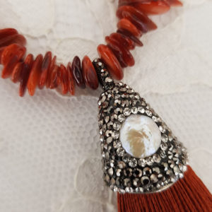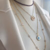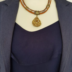Linda conrrente combinado com pedra jade tonalizada em azul claro, com pingente em pedra sabão reconstituida.