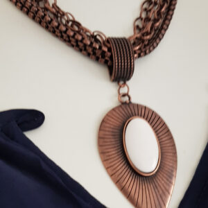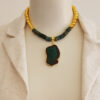 Estiloso colar com varias várias camadas de correntes combinado com o pingente com pedra sabão reconstituída.