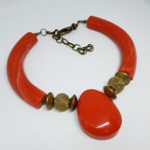 Acabamentos e entremeio: latão em ouro velho, fecho lagosta.