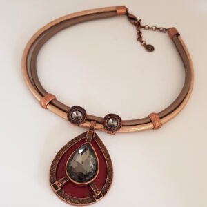 Colar de cordão de tecido cobreado com pingente de pedra sabão.
