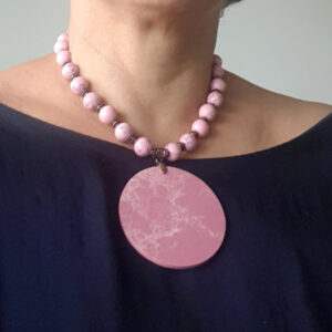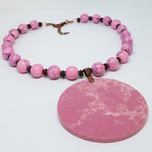 Colar com pedra turquesa tonalizada pink com pingente grande de pedra sabão do mesmo tom.
